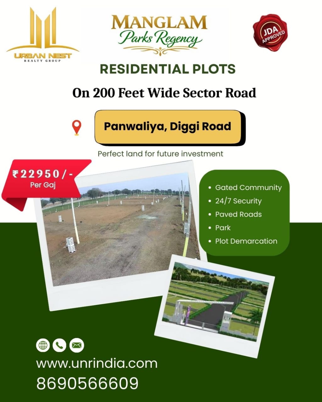 Urban Nest Realty Group is currently developing multiple residential plotting projects in prime and fast-growing locations of Jaipur, offering secure, well-planned, and investment-friendly plots.